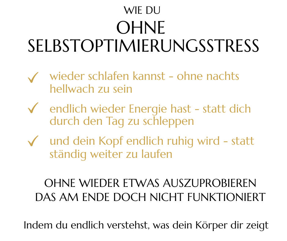 Versucht, Stress zu reduzieren.Ich hatte so viel Wissen & Ausbildungen über Gesundheit und trotzdem keine Antworten.Denn egal, was ich gemacht habe:ES HAT NIE WIRKLICH GEHALTENUnd dann habe ich etwas erkannt,