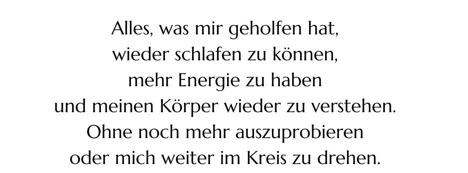 Schlafprobleme.Und immer wieder diese Frage:WAS STIMMT NICHT MIT MIR?Und gleichzeitig wollte ich einfach nur, dass es endlich aufhört.Ich habe alles ausprobiert.Ernährung verändert.
